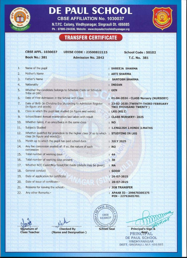 Transfer Certificate of ABHIGYA BHARTI 6546.jpeg