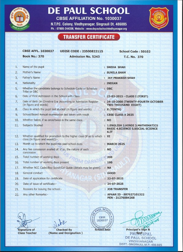 Transfer Certificate of SAMRIDHI SINGH 6742.jpeg