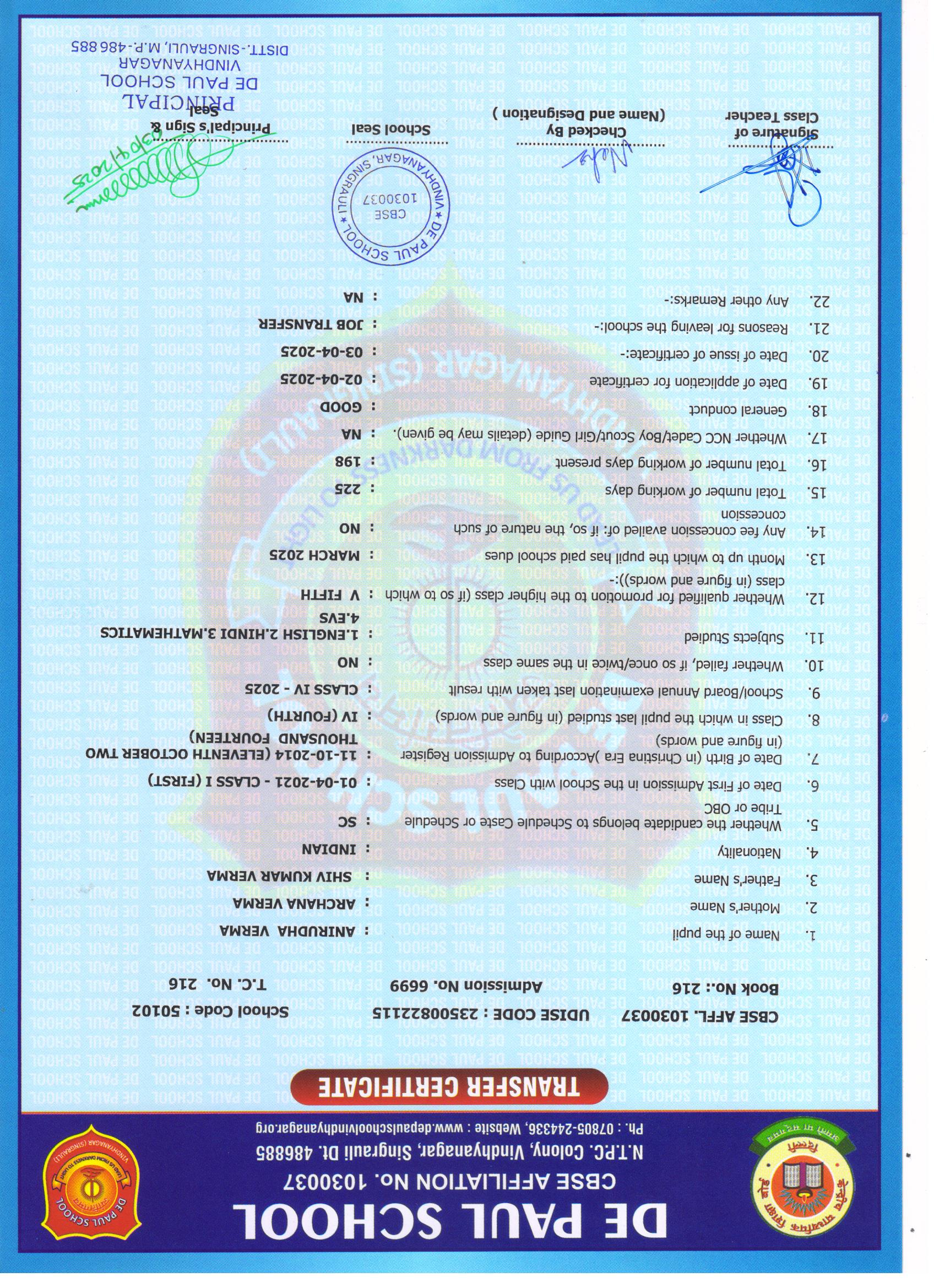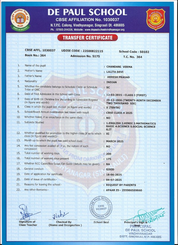 Transfer Certificate of YASH KUMAR VERMA 5598.jpeg