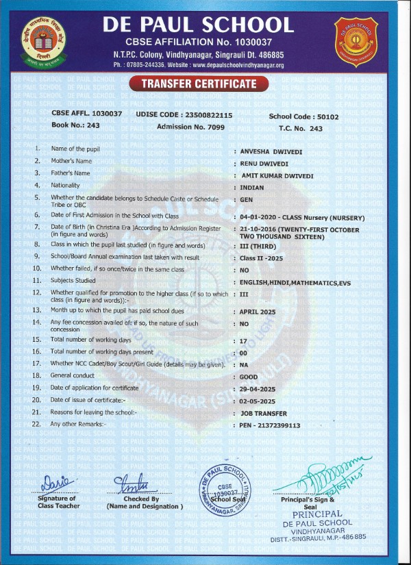Transfer Certificate of ANSHIKA DWIVEDI 5528.jpeg