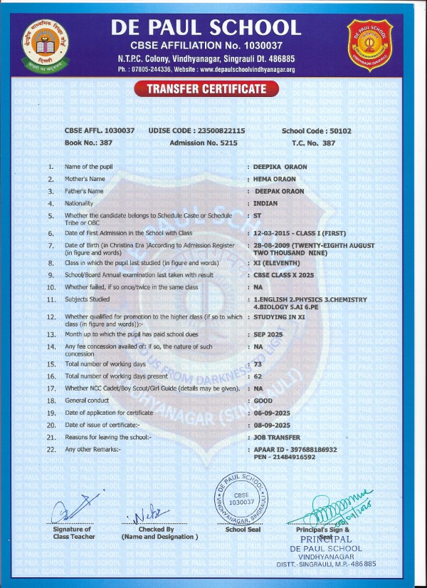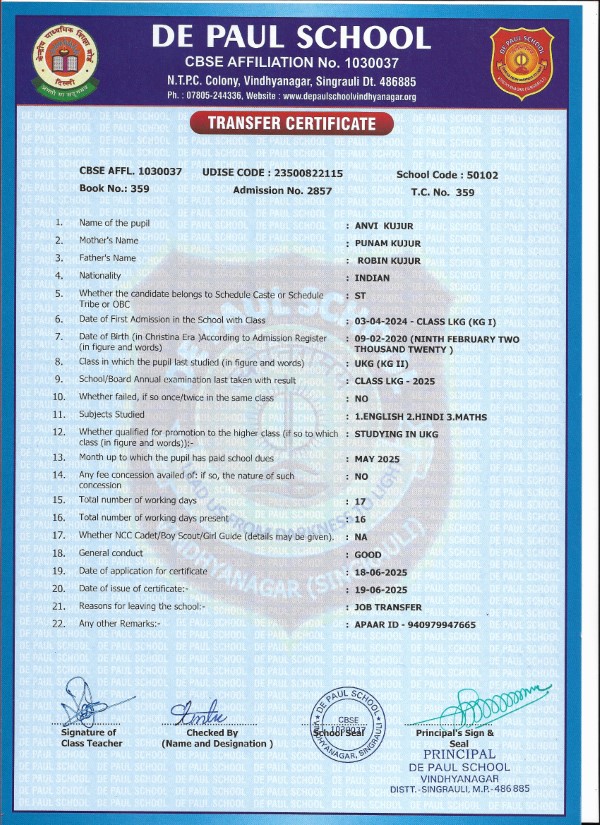 Transfer Certificate of ABHIGYA BHARTI 6546.jpeg