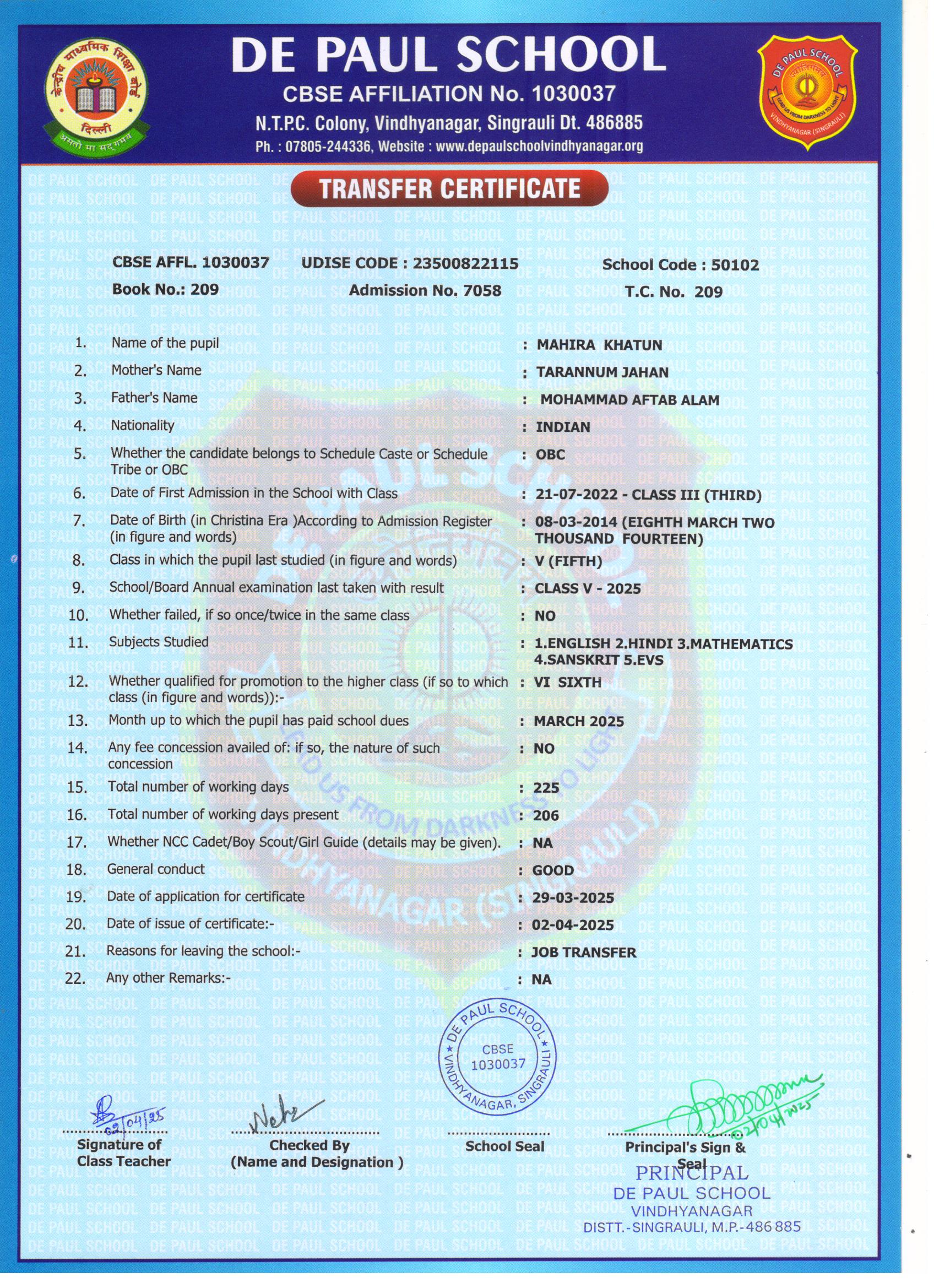 Transfer Certificate of MAHIRA KHATUN 7058.jpeg