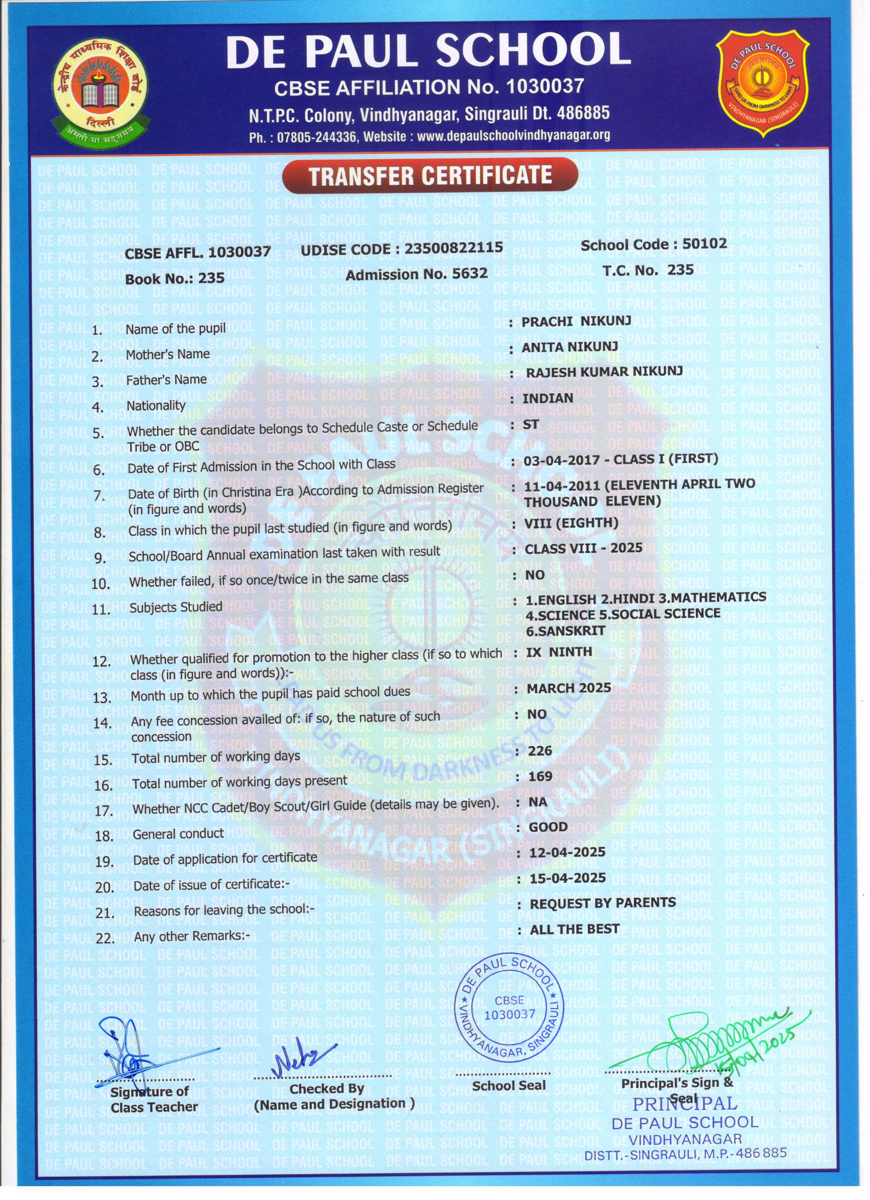 Transfer Certificate of PRACHI NIKUNJ 5632