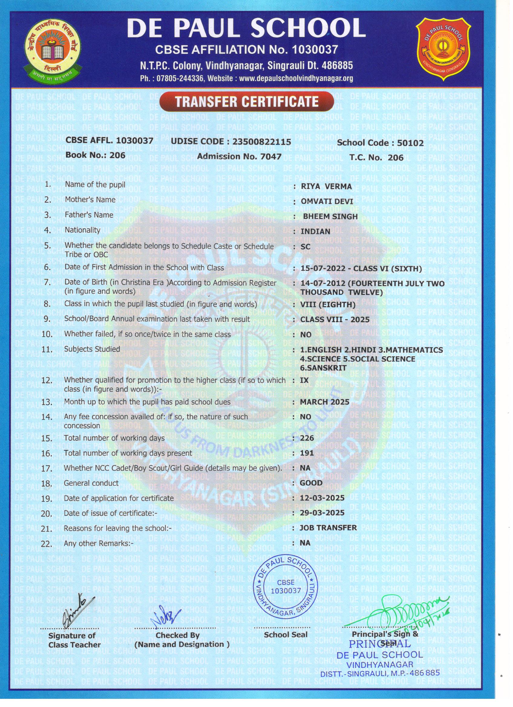 Transfer Certificate of VANSHIKA GURJAR 6959.jpeg