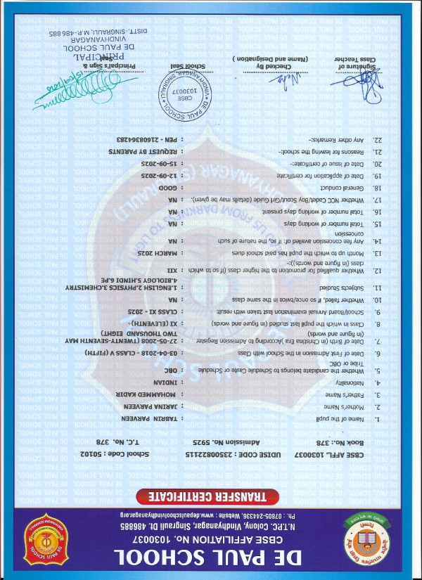 Transfer Certificate of MEHUL KUMAR 6983.jpeg